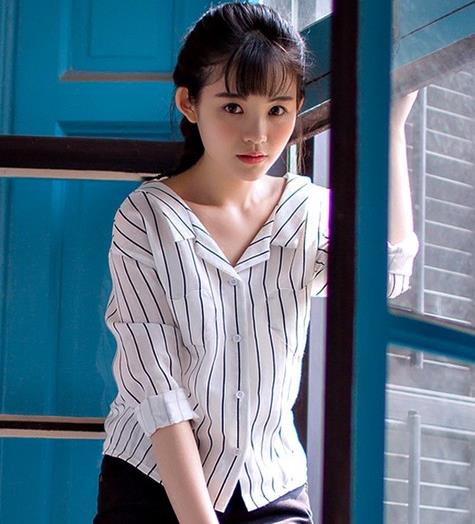 同样“劈叉”的V字领运用翻领设计则有了懵懂的校园气息,锁骨的三角区域体面大方地露出,稀疏的竖条纹也将学生清纯的气息升级,然而咱们今天的主题是矜持的性感,矜持有了,性感在哪里呢?在深深的脑海里,在“制服”的诱惑里。