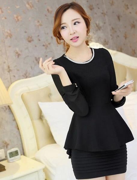 职业装有着这个世界上最严苛的定义,它穿起来拘束动起来规整但看起来却非常的标准化,具备强烈的说服力。尽管革新和改良早已渗透到设计和剪裁的宗旨里,但黑色的荷叶摆与钻领却丝毫不会影响干练的气息。