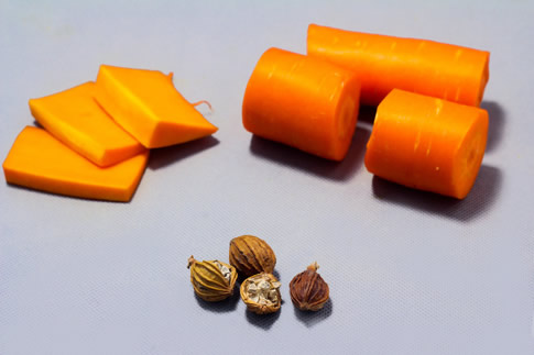 胡萝卜被誉为“皮肤食品”,能润泽肌肤。另外,胡萝卜含有丰富的果胶物质,可与汞结合,使人体里的有害成分得以排除,肌肤看起来更加细腻红润。