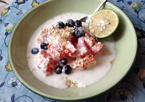 Tips:燕麦含有丰富的B族维生素、膳食纤维和矿物质,有利于生理功能的调节及加快新陈代谢速度,降脂降压,清热通便,对减肥有益。