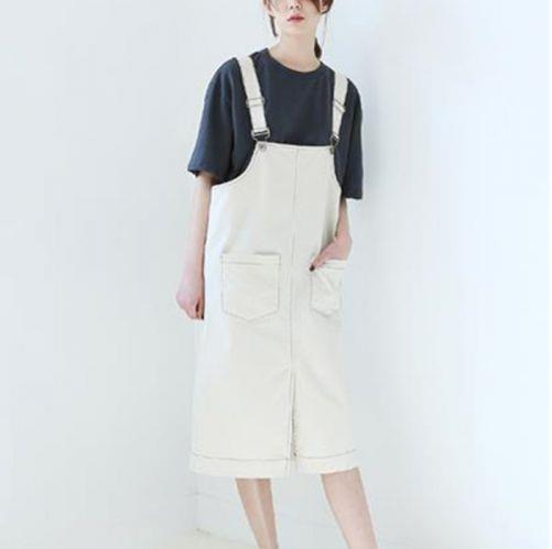 T恤搭配背带裙会显得整个人俏皮可爱,如果再配上带上时髦项链和耳环,就尽显少女气质啦。