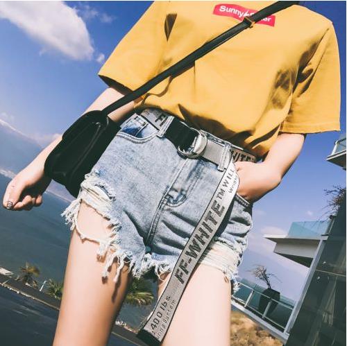 新款流苏毛边破洞牛仔短裤女夏高腰a字宽松显瘦阔腿热裤潮