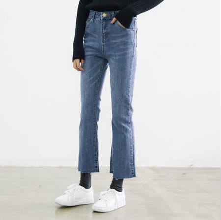 一年又复苏,轻装便利的帆布鞋又该出来见见太阳了,牛仔裤跟着一起登场。这款版型特别讨欢心,直筒的小宽松,裤口有点微阔,毛边剪裁,很显脚踝细。颜色呢,也是复古水洗的效果,猫须磨白的抓纹,特别怀旧。好搭T恤、衬衫,中高腰,穿起来也很舒适。特别推荐!