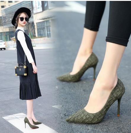 黑色是百搭款的高跟鞋,不过这款黑色可不是简单的春娥,荔枝纹的纹理给人精致的感觉,搭配上细跟的高度,凸显了女人的气质优雅,简直美炸了。