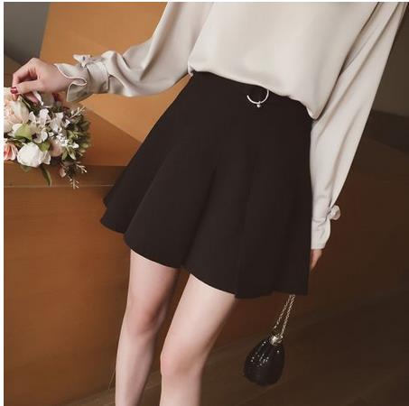 新款韩版宽松纯色百褶短裙女百搭气质显瘦高腰a字半身裙