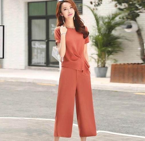 流线型的剪裁,时尚简约的版型更好的凸显女性凹凸有致的身材,传统的圆领设计修饰颈部线条。腰身衣摆不规则的褶皱设计风格独特,富有个性,阔腿设计时尚潮流展现女王气质。