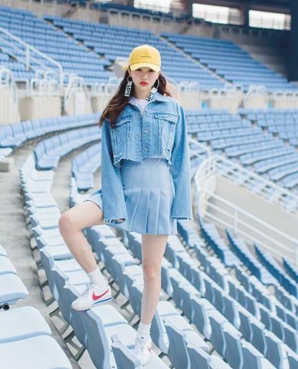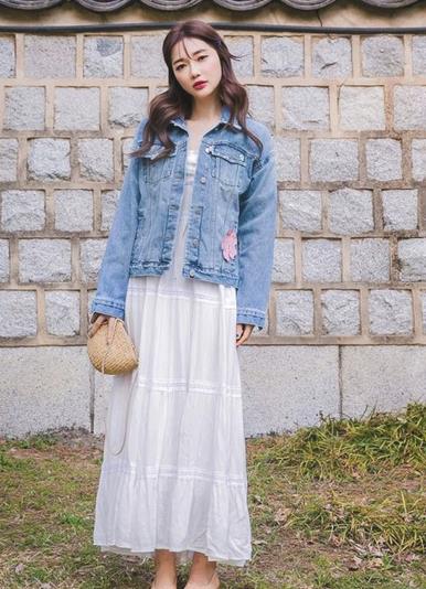 韩版牛仔衣搭配半身裙来穿,搭配不同的半身裙塑造的形象也完全不同哦,让你轻松在甜美优雅之间随意切换。