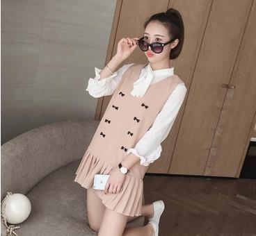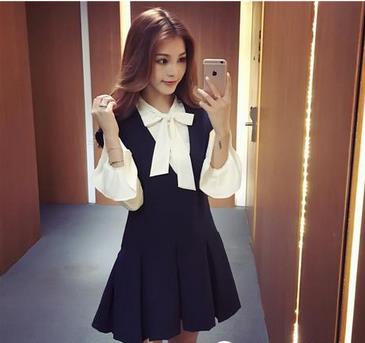 甜美的连衣裙,两件套设计,系带立领雪纺衫与无袖连衣裙的搭配,适合初秋季节穿着哦!也为MM们省去了搭配上的烦恼哦!蝴蝶结装饰连衣裙,打破单调,视觉上给人感觉很甜美哦!上身效果也是美美滴!!!
