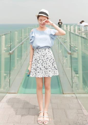 搭配看点:露肩上衣作为时下最热的扮靓单品,搭配碎花裙子也十分美丽,配饰上再用一顶甜美的帽子来打造时髦感,分分钟穿出清新少女气息。