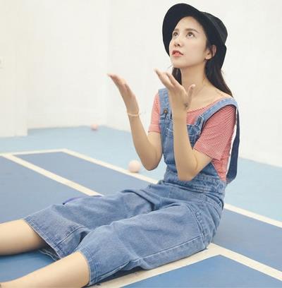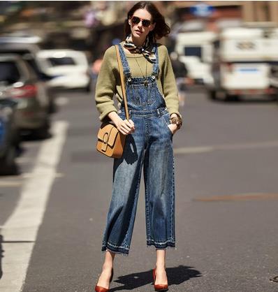牛仔背带九分阔腿裤