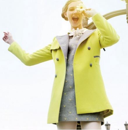 06 轻盈明快的色彩很适合身材瘦削的姑娘,虽瘦但有活力,就不会呈现体弱多病的感觉。修身剪裁凸显苗条身型,翻领设计帅气又大气。内搭选择与大衣配色呼应的灰底黄波点毛呢裙,层次分明不杂乱。