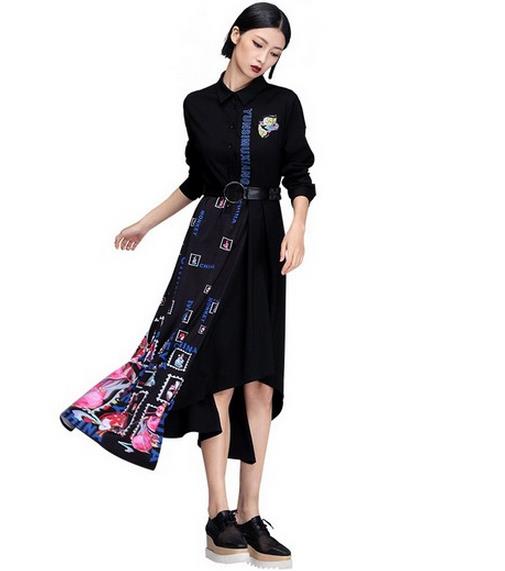 想要提精神光靠温软的清新的印花还不够,要抢眼的别致的一眼就能被看到的。纯黑的霸气不会让你在秋日里昏昏欲睡,而印花点缀在裙摆凸显了不规则的时尚,一下子就让睡意都远离,想要好好研究一番。