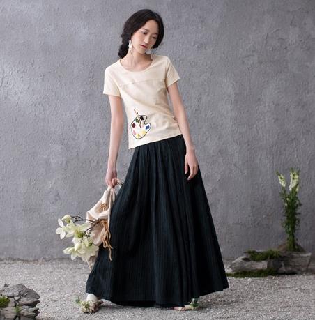 棉麻,把它当做上班时穿的T恤,就会有种场合搞错的迷惑感。比起通勤,棉麻的场合应该适合旅行和休息的日常联系在一起。长长的半裙,及膝的牛仔中裤,或者微哈伦的九分裤,才是归宿。