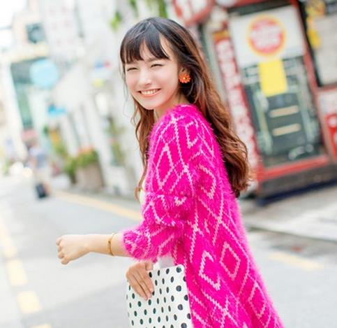 马海毛有种绒绒的感觉,一看就是甜美可人的妹纸,配上惊艳的玫红色,更是美得不行了。白色的菱形线条穿插得恰到好处,白与红的鲜明对比,就将整体的色彩氛围提亮,塑造一个青春无敌的你。
