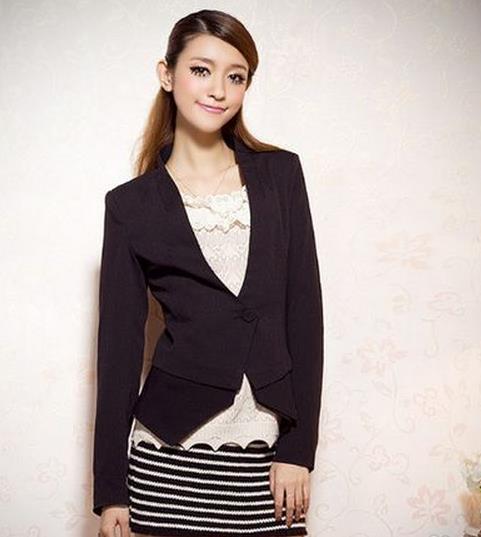 黑色西装,里面搭配上蕾丝衬衣,下面搭配上包臀,很显气质,时尚而又美丽;