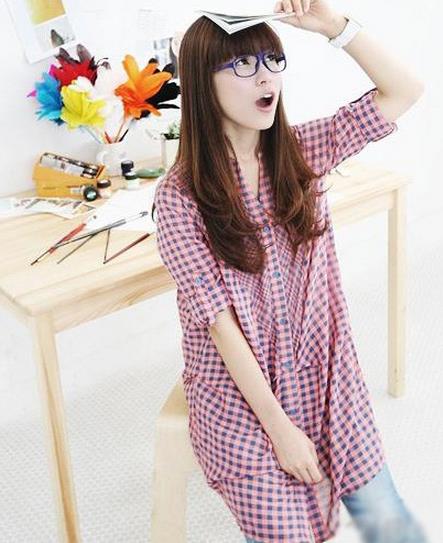 粉色小格子衬衫,宽松感加上超长设计,既可以搭配牛仔裤,又可以搭配裤袜,一衣多搭,实用又方便,很有一股校园的气息!