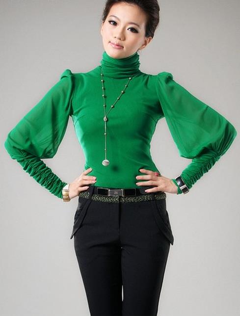 别致典雅的泡泡袖很有中世纪宫廷装的风味,穿在身上极富造型美感。优雅的高领与弹力修身款型单穿都能非常出色,搭配披风式外套或者背心式毛衣罩衫都是不错的选择。