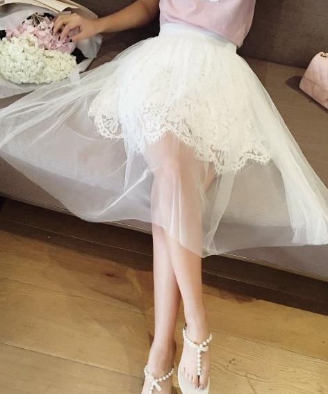 和普通的百褶纱裙不同,内里是蕾丝,更显精致有型。 裙身蓬蓬的效果,更显腰细腿长。夏日清凉感满满, 三种颜色都很经典,和蕾丝拼接富有层次感。 腰间弹力样式,可高腰可低腰,随心调节, 朦胧的视觉设计可优雅休闲,也能文艺复古范。