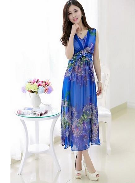 真丝V领无袖高腰连衣裙