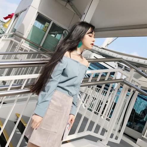 春季韩范一字领露肩松紧带衬衣女打底衫上衣宽松长袖衬衫