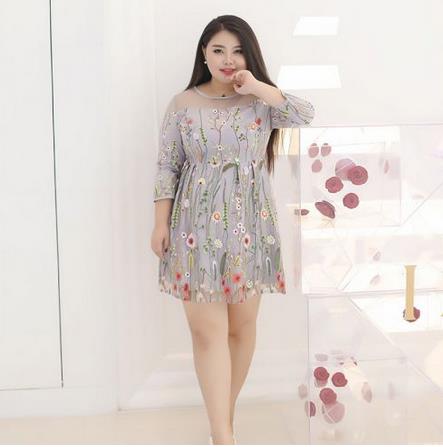 2017春装新款胖MM显瘦复古重工刺绣蕾丝连衣裙