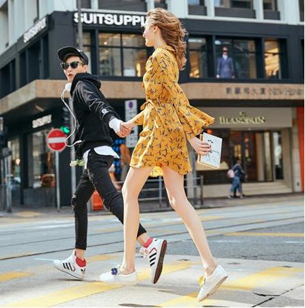 不想太帅气,那就选择搭配平底鞋,圆头平底鞋搭配碎花裙,邻家女孩的既视感。
