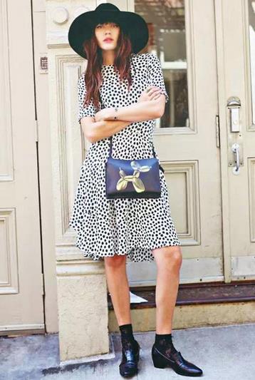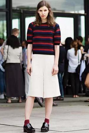 冬天这样穿也很有指导意义,袜子一定要是显好的平织纹或者时髦的竖条纹哦!