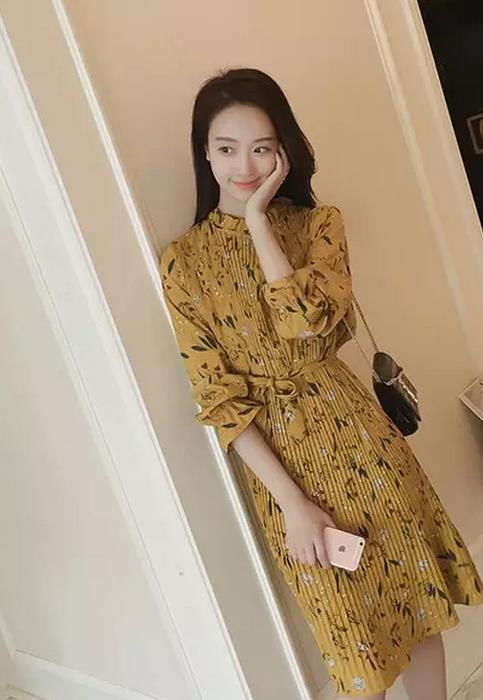 想要减龄的妹子看过来,甜美的碎花连衣裙, 简单的搭配给人一种青春靓丽的感觉,雪纺的面料 加上小清新的印图案穿起来显瘦又气质 整体看上去很修长,花色也很显肤色!