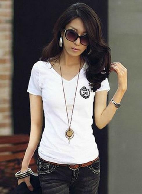 小编建议白色内搭T恤还是简单的好,高温的日子,任何繁复的东西都不愿多看一眼。若希望得到不错的回头率,那就避开让人看了就心情躁郁的复杂图案吧。小型V领与长项链联袂,双重V型瘦脸效果更佳。