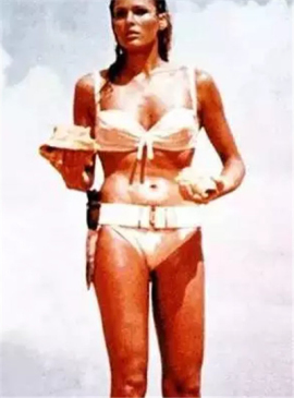 1962年,《007》系列的第一位邦德女郎乌苏拉·安德烈斯带着一股比基尼旋风刮过银幕。在这部《铁金刚勇破神秘岛》中,来自瑞士的金发美女出水芙蓉般地出现:身穿白色比基尼,腰间捆着一把猎刀,在蔚蓝的加勒比海中缓缓走来,美得令人窒息,沙滩女孩们纷纷效仿。她为之后的007系列电影奠定了天使容颜和魔鬼身材的邦女郎整体基调。