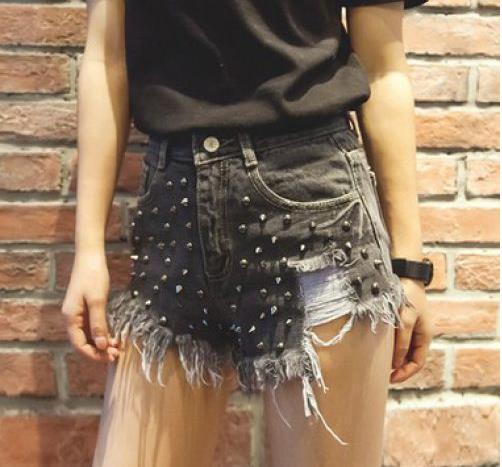 夏天就是要大方的秀身材啊,不要把美腿藏起来。这款性感热辣的牛仔短裤贴合腰线的设计,让你的臀部更加挺翘迷人。独特的流苏线条和铆钉是不是非常靓丽呢。