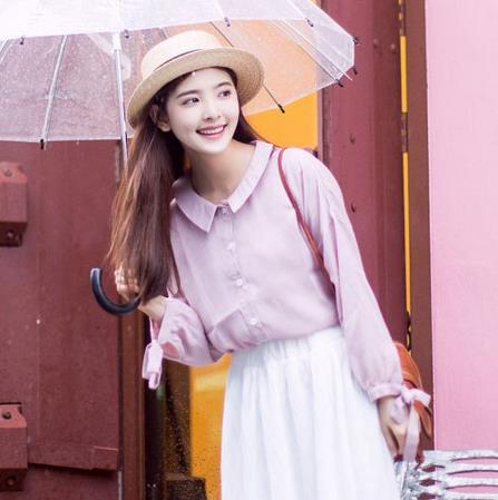 温柔的藕粉色,连女汉子穿上都会立马变温柔。 进口雪纺面料,有着细腻的做皱肌理。复古的小翻领,与寻常的领口完全不同,你应该不会在衣柜里找到同款的领子。袖子做了系带,带着柔美轻熟的知性范。