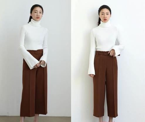 春季必备的白色毛衣非常好搭配,简约的款式穿着起来大方得体,加上高领的设计保暖又显气质,喇叭袖的设计又多了一丝复古的味道,下身搭配一套咖啡色的阔腿裤,百搭又潮流。
