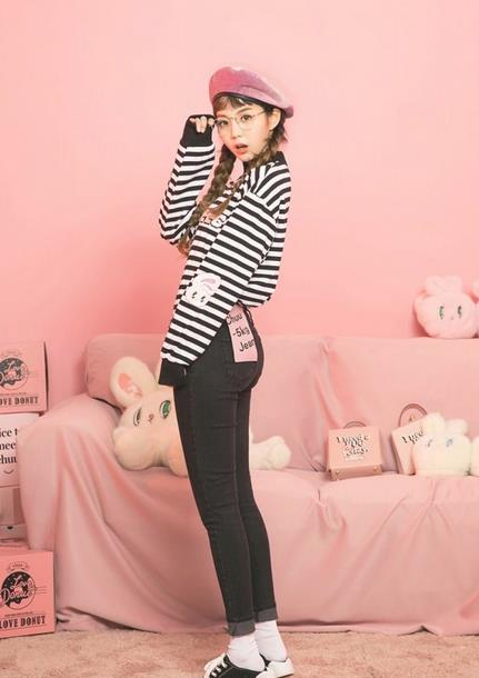 短款条纹t恤怎么搭配:打造清新少女范儿