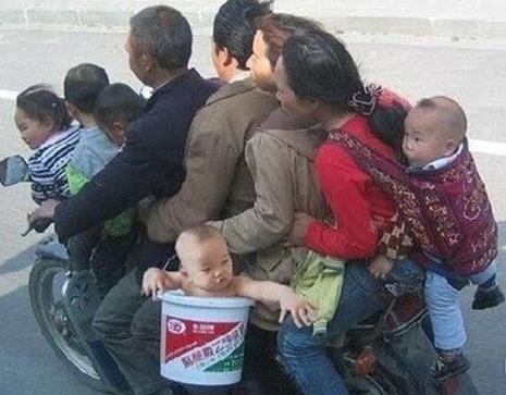 史上最拉风的家人出行!最后小孩处于悬空状态不建议模仿。