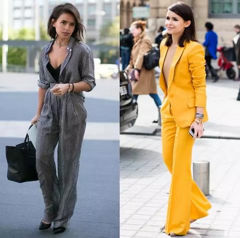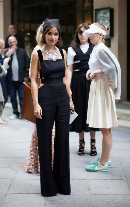 其实在选择上,长裙也是一样的道理,完全能够遮住鞋子的裙长,给人产生视觉错觉,让人坚定的相信裙长的长度就是你腿的长度。选择连体裤装效果加倍呢,内搭多高的高跟鞋都不知道,只知道裤长就是你的腿长,这才是胸以下全是腿啊!