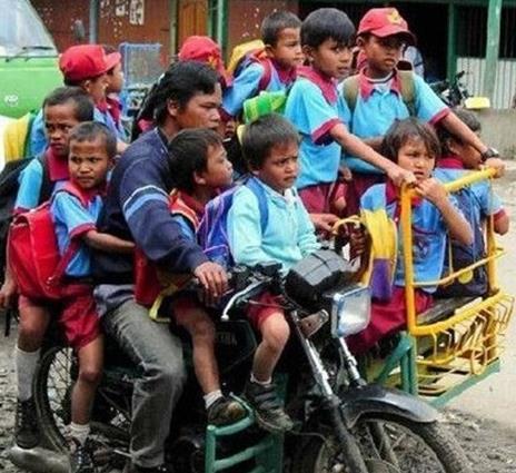 最牛的“超载”,也是最心酸的超载,12个孩子坐一辆摩托车。