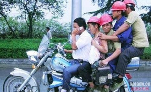 我们的农民工兄弟坐着国产“哈雷”往工地赶,真是苦了最后那大哥!