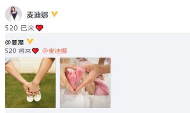 稍晚,麦迪娜也转发了这条微博,写道:“520,已来。”姜潮则评论道:“老婆辛苦了。”并配上抱抱的表情,大秀恩爱。