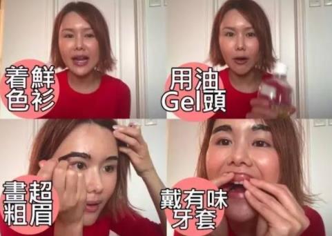 刘思希还特地为网友拍片,除了多谢大家支持外,还重演一次怎样由头到脚扮丑女。首先见到本来是美女的她,化好妆准备变身,她说这个角色最重要是穿鲜色衣服,最好鲜红和鲜黄色!弄好衣服就要弄头发啦,她竟然出动花生油来抹头发,原因是:“因为有了它,你的头就会很油!因为小红经常都要带水货,所以她没有时间洗头。”然后就轮到化妆部分,平时大家画眉用眉笔,但为加强个粗度,刘思希改用眼线笔画条比蜡笔小新更粗的眉毛!