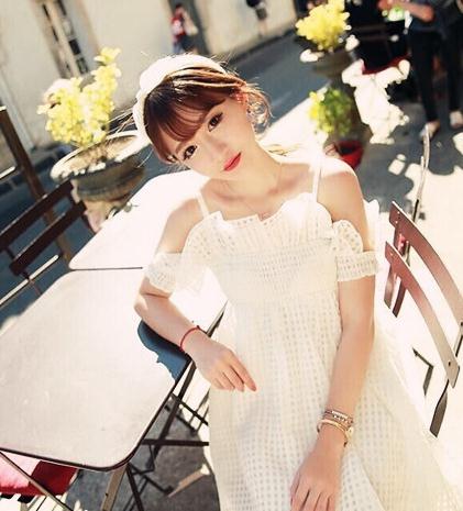 搭配看点:白色露肩连衣裙十分的清纯美艳,搭配一款同色系发带与之色彩呼应,更有俏皮可爱的小女人气息。手腕的金属首饰简约大气,潮流感十足。清新的夏日,就这样美美的出街吧。