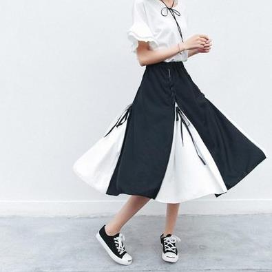 每个女生应该或多或少都会有一条裙子,裙子可谓是女生的爱宠,半身裙也是必不可少的。半身裙有许多种类,长裙,短裙,铅笔裙和A字裙等等。所有穿着在下装的单独的裙装样式豆角半身裙。半身裙可以轻松hold住各种风格,可以说是一个非常实用的单品。今天,小编就为大家带来各种好看实用的半身裙。 1.黑白拼色半身裙。这一款半身裙,最大的特点在于它的设计,运用经典黑白撞色的拼色技术,加上交叉的绑绳结构,使得白色若隐若现,腰围的设计是松紧弹力,非常方便穿脱,也适合各种大小腰围的菇凉们。