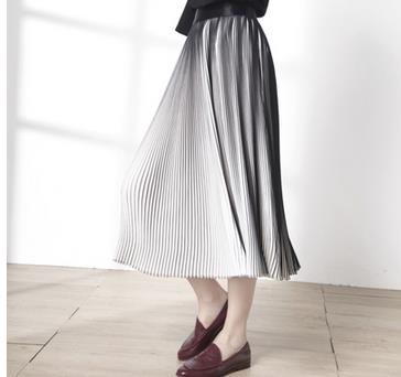 7.黑白条纹百褶裙。从外观上来说,这一条裙子真的非常吸引人的注意力,将黑白条纹元素运用在裙子上,看上去从上到下颜色是渐变的,面料是雪纺的,透气性强,手感也好,穿上它走在大街上绝对是回头率最高的。