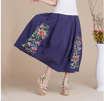 9.民族风刺绣长裙。这一条裙子和前面的不同,首先,面料是全棉的,不变形也不缩水,穿久了也不会起球,其次,这一条裙子上面有刺绣的小花,非常具有民族风的特色,有两款素雅纯色的可以选择,非常富有艺术感。