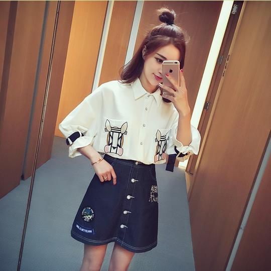 春季女装2017新款韩版时尚刺绣衬衫套装女休闲气质半身裙两件套潮