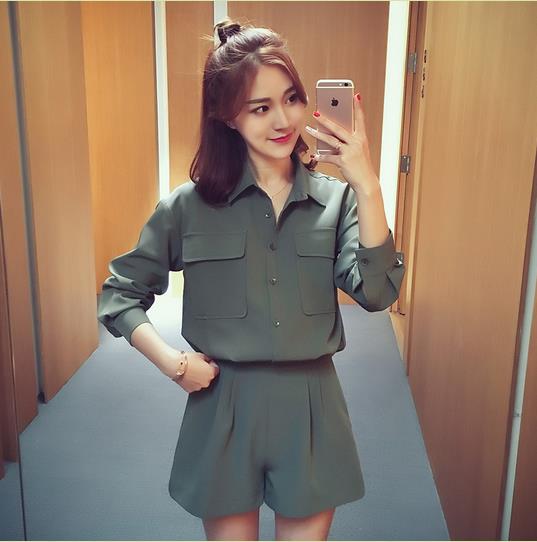 2017春季女装新款宽松显瘦衬衫连体裤女百搭纯色休闲裤高腰短裤子