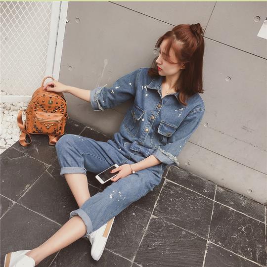 牛仔连体裤可谓是装酷神器,看过一些时尚达人的一些牛仔连体裤的穿搭look,真的是帅气。那这款也可以让你摆脱甜美,变身帅气达人。搭配一双小白鞋,带上一个墨镜,帅气直线上身,但再帅气的人,也需要柔美的一面,可以搭配一个链条小包包,刚柔结合。这样的look是不是更是年轻人们的风格。