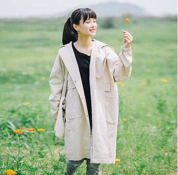 6.连帽清新风衣。Oversize的版型,显瘦又休闲,遮肉又无拘束。暗抽绳可以优化背面线条和衣服的轮廓。帽子不可拆卸,但是可以收起来隐形,变成立领风衣。文艺的米白色和静谧蓝,百搭又有调性