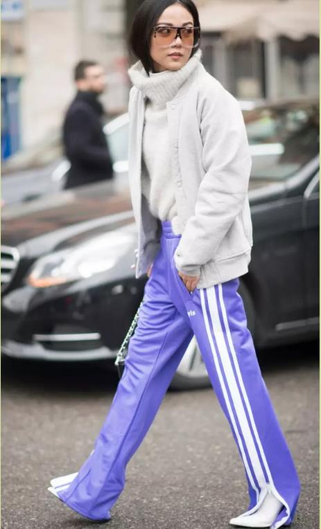运动条纹一般都是很好搭配的,如果是条纹装饰在下装一般上身套个卫衣就可以出门了,如果是上装有装饰就更百搭,配裤子显得帅气,配流行的细百褶中筒裙显得复古优雅。