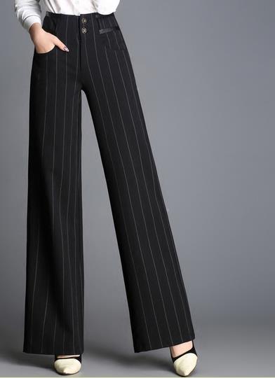 2017春季新款条纹阔腿裤女裤子韩版宽松弹力阔脚裤拼接休闲长裤潮